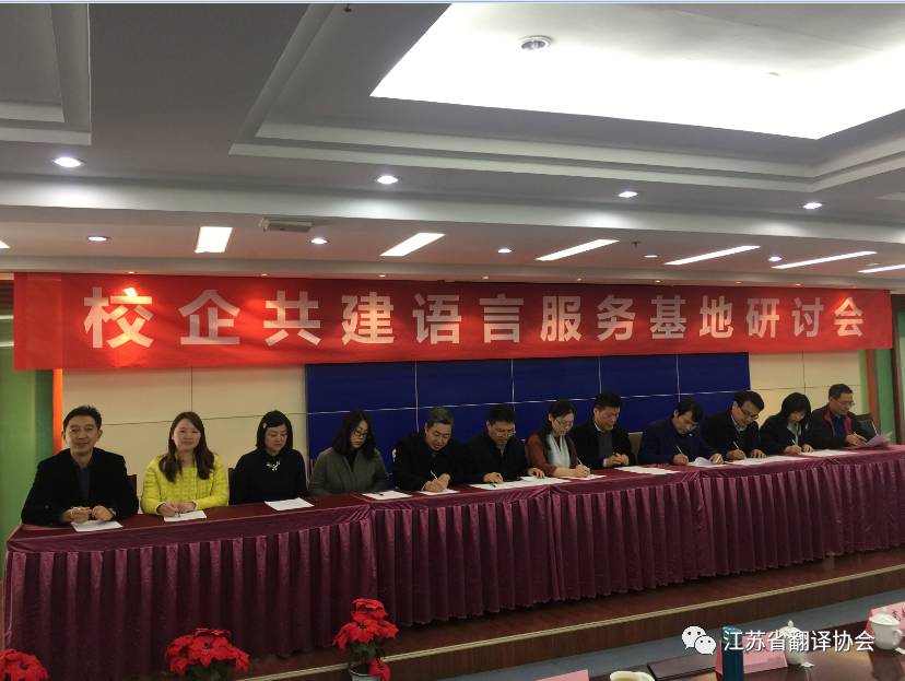 2017年4月12日,南京大學(xué)、南京師范大學(xué)等高校與南京瑞科翻譯有限公司共同發(fā)起組建的“江蘇高校語言服務(wù)基地”在南京宣告成立,廣東外語外貿(mào)大學(xué)高級翻譯學(xué)院院長、全國翻譯專業(yè)學(xué)位研究生教育指導(dǎo)委員會(huì)秘書長趙軍峰教授、北京語言大學(xué)高級翻譯學(xué)院名譽(yù)院長劉和平教授、江蘇省翻譯協(xié)會(huì)秘書長吳文智、中國翻譯協(xié)會(huì)本地化服務(wù)委員會(huì)副主任、對外經(jīng)濟(jì)貿(mào)易大學(xué)崔啟亮博士、中國翻譯協(xié)會(huì)本地化服務(wù)委員會(huì)副秘書長、廣東外語外貿(mào)大學(xué)王華樹博士、北京墨責(zé)國際文化發(fā)展有限公司總經(jīng)理林凡林、南京瑞科翻譯有限公司董事長劉克超和總經(jīng)理左仁君等80余人參加了本次揭牌儀式以及研討會(huì)。
