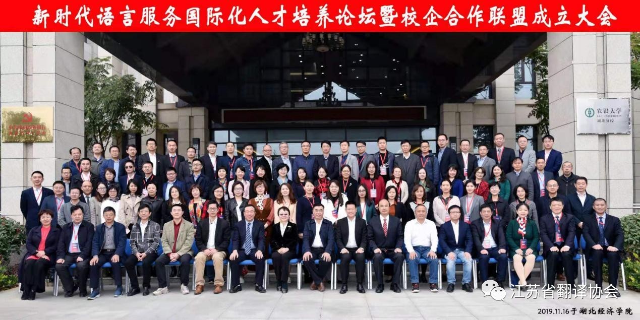 2019年11月15日至16日,新時(shí)代語言服務(wù)國際化人才培養(yǎng)論壇暨校企合作聯(lián)盟成立大會(huì)在湖北經(jīng)濟(jì)學(xué)院召開。應(yīng)湖北省翻譯工作者協(xié)會(huì)邀請,我省翻譯協(xié)會(huì)會(huì)長劉成富教授率部分理事單位負(fù)責(zé)人出席大會(huì)并作大會(huì)致辭,正式啟動(dòng)兩省譯協(xié)之間的合作與交流、以及兩省高校外語學(xué)科與語言服務(wù)企業(yè)之間的緊密合作。