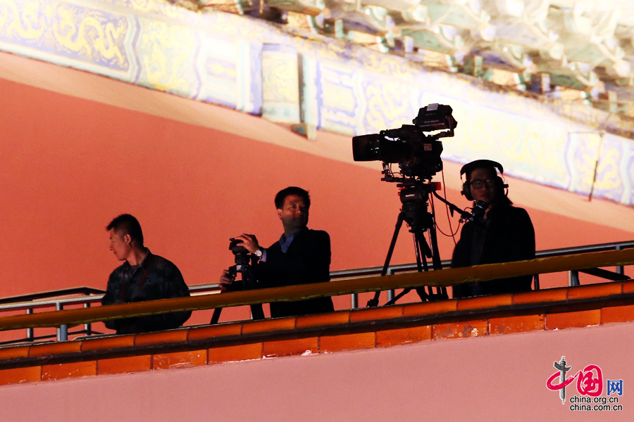 圖為天安門城樓上的直播人員。中國網記者 鄭亮 攝