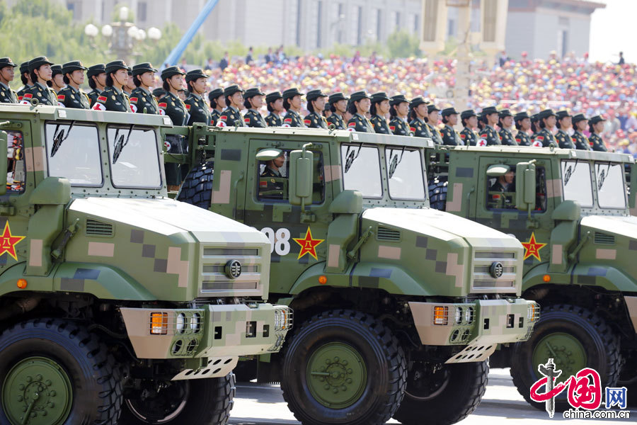 9月3日,中國人民抗日戰爭暨世界反法西斯戰爭勝利70周年紀念大會在北京隆重舉行。白求恩醫療方隊通過天安門廣場接受檢閱。中國網楊佳攝影
