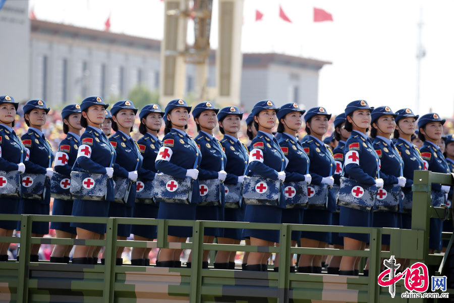 9月3日,中國人民抗日戰爭暨世界反法西斯戰爭勝利70周年紀念大會在北京隆重舉行。白求恩醫療方隊通過天安門廣場接受檢閱。中國網楊佳攝影