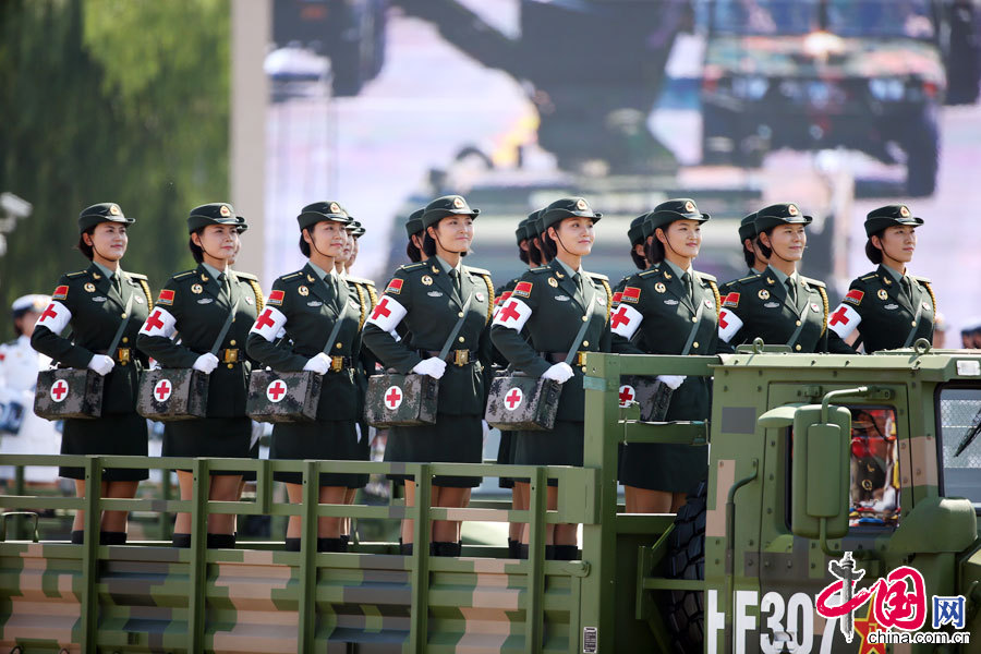 9月3日,中國人民抗日戰爭暨世界反法西斯戰爭勝利70周年紀念大會在北京隆重舉行。白求恩醫療方隊通過天安門廣場接受檢閱。中國網鄭亮攝影