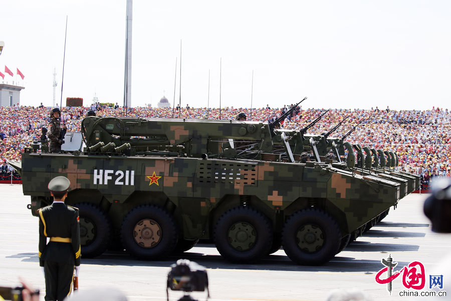 9月3日,中國(guó)人民抗日戰(zhàn)爭(zhēng)暨世界反法西斯戰(zhàn)爭(zhēng)勝利70周年紀(jì)念大會(huì)在北京隆重舉行。裝備保障方隊(duì)通過(guò)天安門(mén)廣場(chǎng)接受檢閱。中國(guó)網(wǎng)楊佳攝影