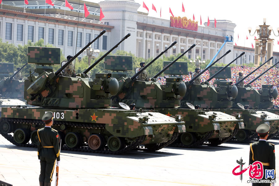 9月3日,中國人民抗日戰(zhàn)爭暨世界反法西斯戰(zhàn)爭勝利70周年紀(jì)念大會(huì)在北京隆重舉行。這是高射炮兵方隊(duì)接受檢閱。中國網(wǎng)鄭亮攝影