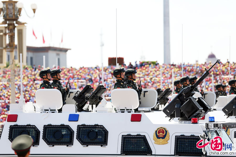 9月3日,中國人民抗日戰爭暨世界反法西斯戰爭勝利70周年紀念大會在北京隆重舉行。武警反恐突擊車方隊接受檢閱。中國網鄭亮攝影