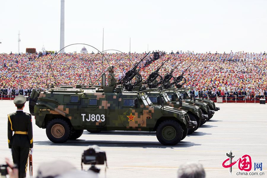 9月3日,中國人民抗日戰爭暨世界反法西斯戰爭勝利70周年紀念大會在北京隆重舉行。輕型突擊車方隊接受檢閱。