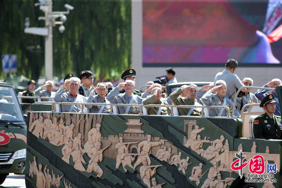 9月3日,中國人民抗日戰爭暨世界反法西斯戰爭勝利70周年紀念大會在北京隆重舉行。這是抗戰老兵乘車方隊。中國網記者 鄭亮攝影