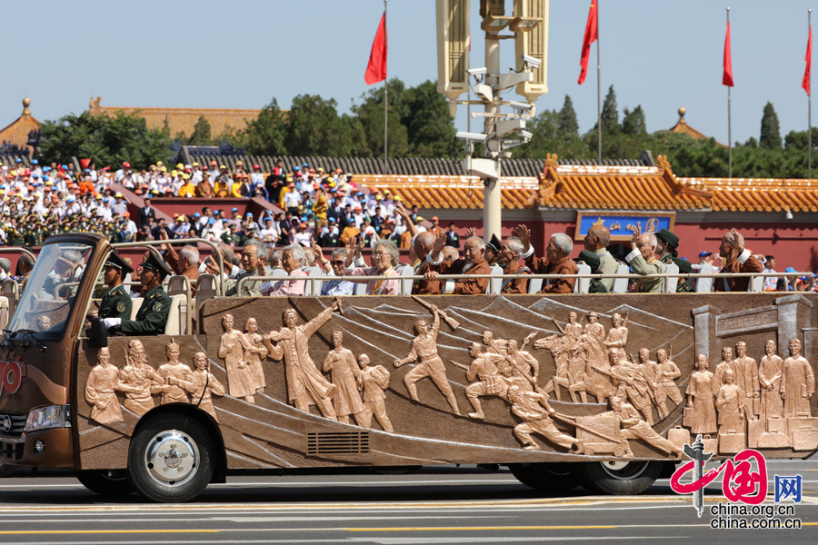 9月3日,中國人民抗日戰爭暨世界反法西斯戰爭勝利70周年紀念大會在北京隆重舉行。抗戰支前模范乘車方隊隊。 中國網記者 董寧攝影