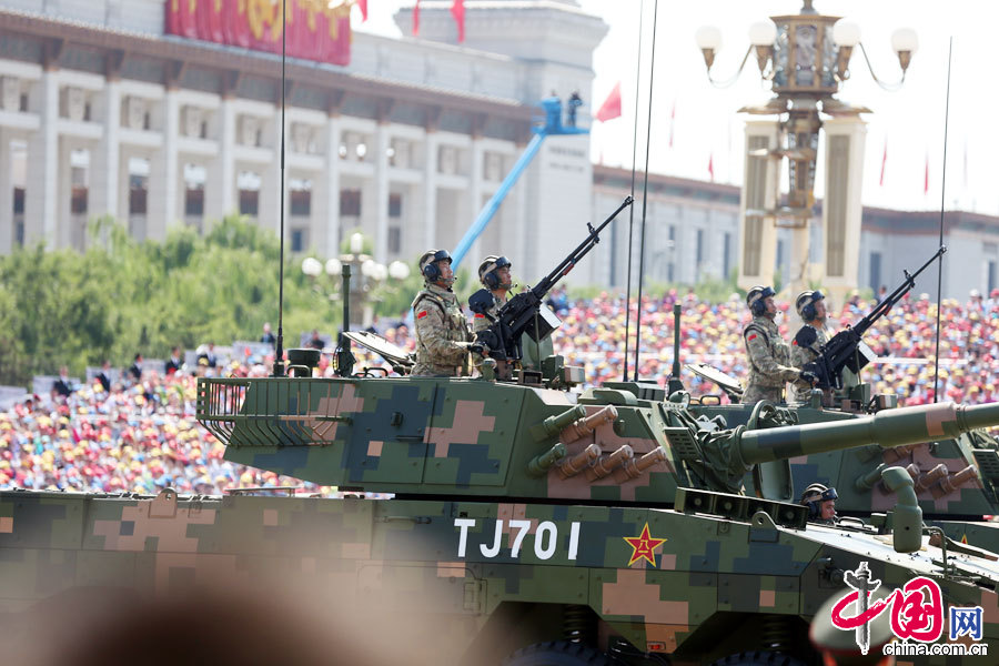 9月3日,中國人民抗日戰爭暨世界反法西斯戰爭勝利70周年紀念大會在北京隆重舉行。輪式裝甲突擊車方隊接受檢閱。