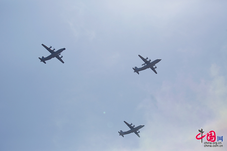 9月3日,中國人民抗日戰(zhàn)爭暨世界反法西斯戰(zhàn)爭勝利70周年紀念大會在北京隆重舉行。圖為海上巡邏機梯隊接受檢閱。中國網(wǎng)記者 楊佳 攝