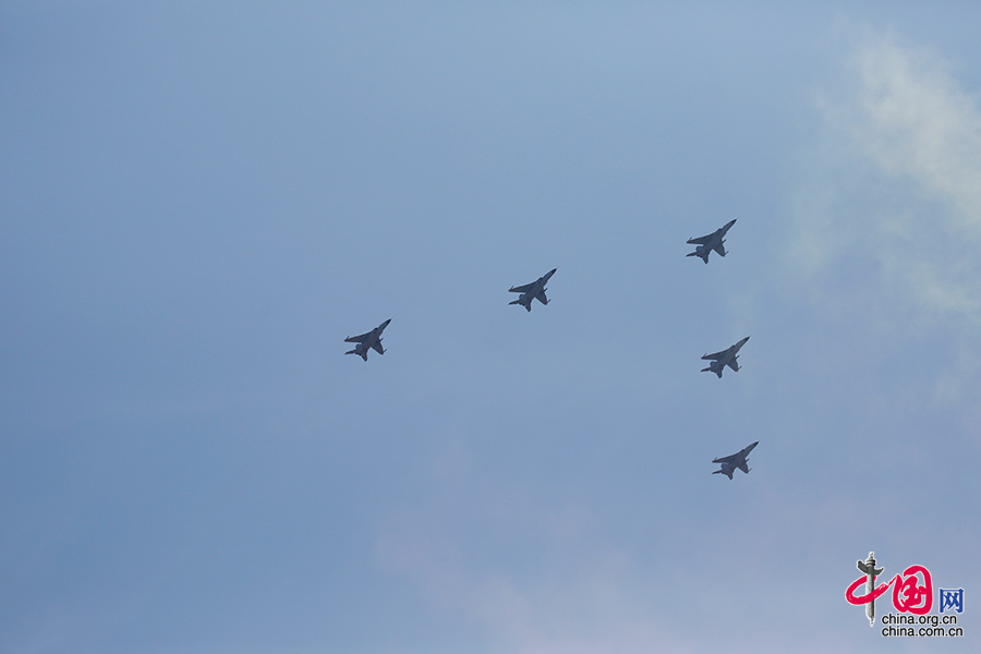 9月3日,中國人民抗日戰爭暨世界反法西斯戰爭勝利70周年紀念大會在北京隆重舉行。圖為海上巡邏機梯隊接受檢閱。中國網記者 楊佳 攝