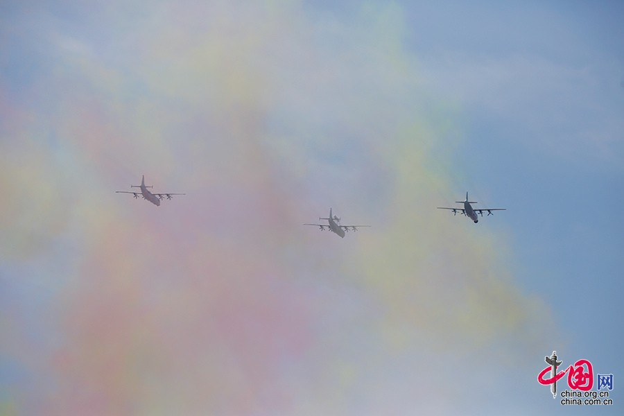 9月3日,中國人民抗日戰爭暨世界反法西斯戰爭勝利70周年紀念大會在北京隆重舉行。圖為海上巡邏機梯隊接受檢閱。中國網記者 楊佳 攝