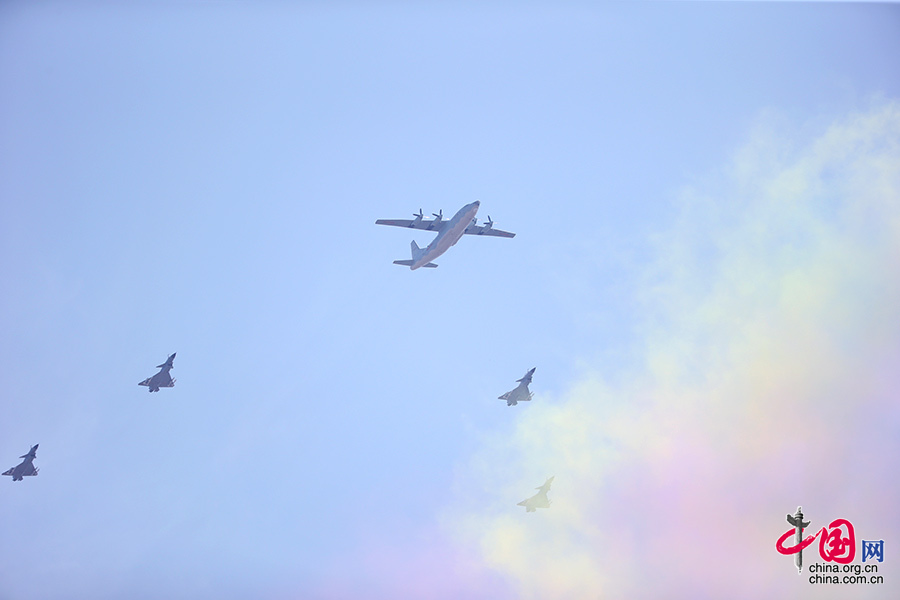 9月3日,中國人民抗日戰(zhàn)爭暨世界反法西斯戰(zhàn)爭勝利70周年紀念大會在北京隆重舉行。圖為預警指揮機梯隊接受檢閱。中國網(wǎng)記者 鄭亮 攝